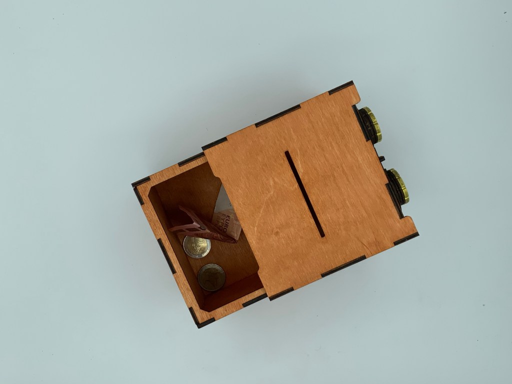Coffre fort – tirelire Dimensions 13 x 13,5 x 11,5 cm environ Fermeture par combinaison à 4 chiffres 1080