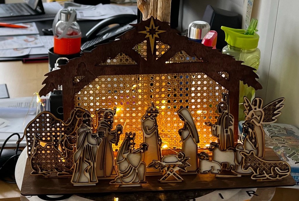 La crèche commémore le soir de Noël. Dans chaque crèche, on retrouve la Sainte Famille, abritée dans un décor d'étable : l'Enfant Jésus est entouré de Saint Joseph et de la Vierge Marie. Ce sont les santons essentiels de la crèche, vers lesquels convergent tous les autres.