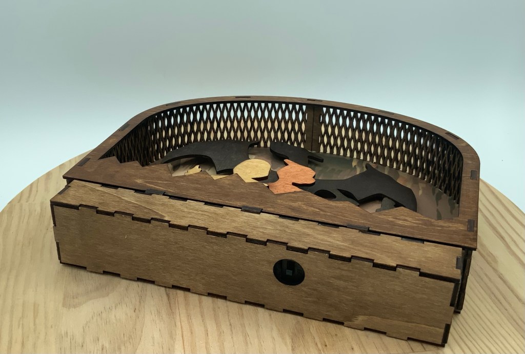 Dimensions 21,5 x 4,5 x 18 cm environ – 2 piles AA